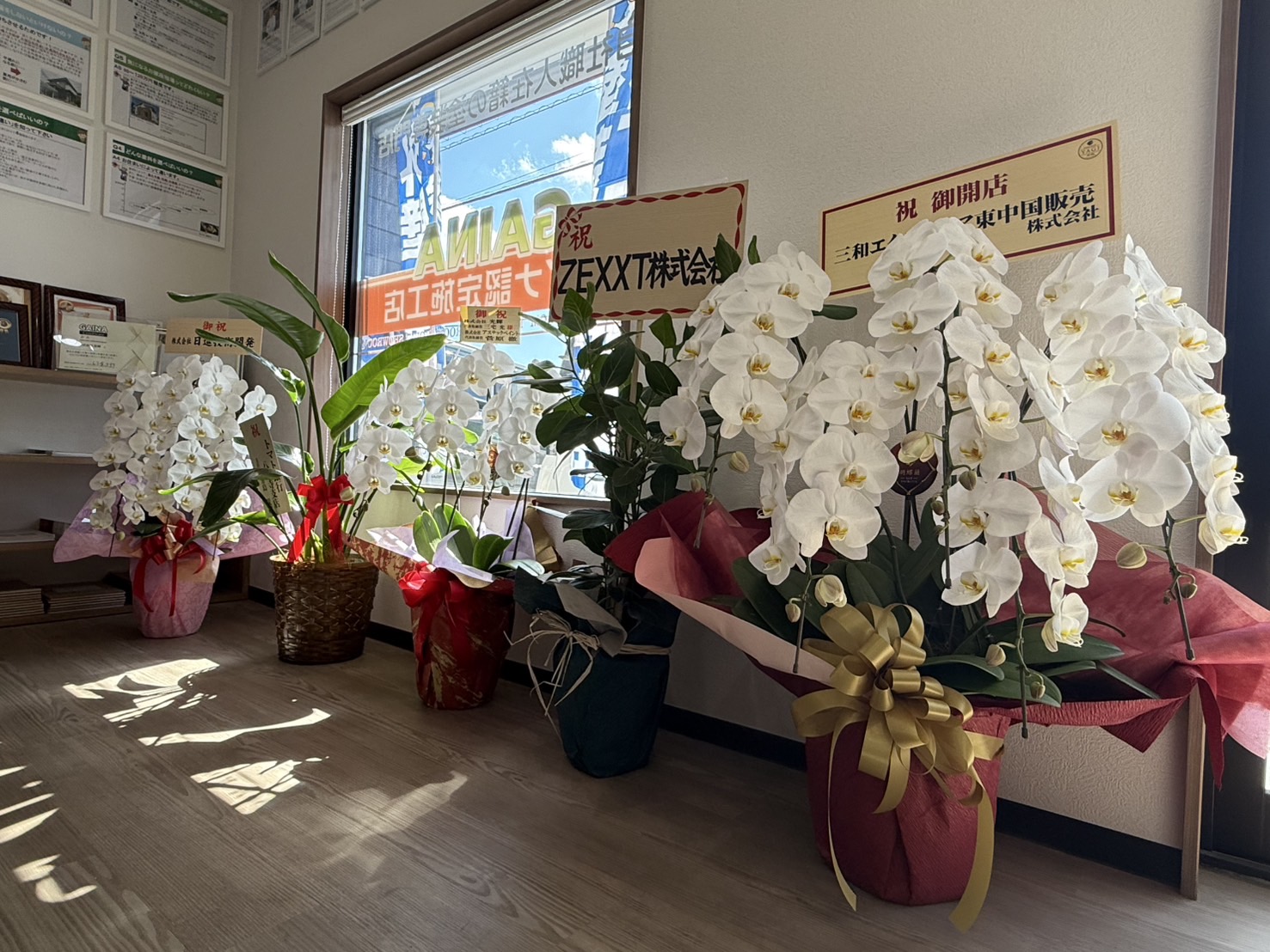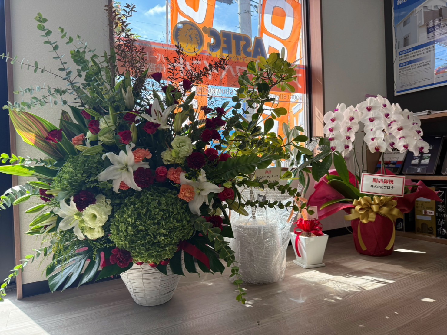 また、お祝いのお花等も沢山頂き、ショールームがとても華やかで