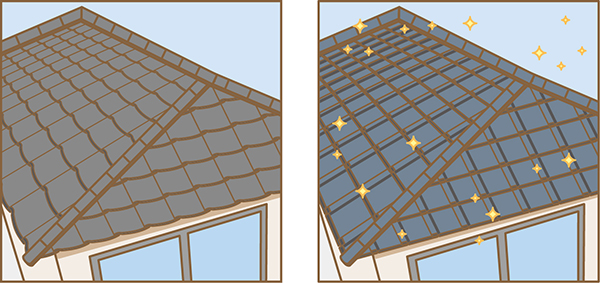 さらに、劣化状況に応じて「補修」「葺き替え(屋根材の全交換)」