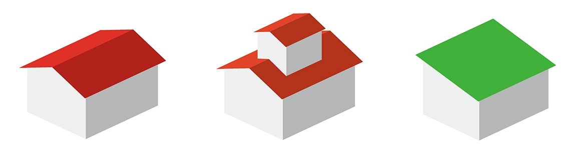 屋根面積・形状・勾配(屋根の傾きの度合い)による違い