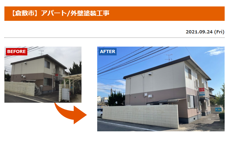 引用:【倉敷市】アパート/外壁塗装工事 – 倉敷の外壁塗装・屋根塗装専門店「光輝塗装」