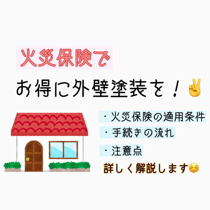 岡山県倉敷市・総社市の皆様こんにちは🌼 倉敷市・総社市をメインに 塗装工事を行なっております 外壁塗装・屋根塗装・雨漏り専門店の 光輝塗装です!!😊🌈 火災保険を活用して、お得に外壁塗装ができる可能性があることをご存知ですか。❣️ 知らずに工事をしてしまうと、せっかく保険に加入しているのにもかかわらず、 もらえるはずの保険金がもらえなくなってしまうこともあります。 この記事では、火災保険の適用条件や手続きの流れ、 注意点などをわかりやすく解説します🍀 1.外壁塗装に火災保険が適用されるケース 火災保険は、火災による被害だけでなく、 さまざまな自然災害による住宅破損を補償してくれる保険です🌟 どのような自然災害によって、保険が適用されるのか、 適用外となるケースについてわかりやすく解説します。 火災保険が適用される自然災害 火災保険は主に以下のようなケースに適用されます。 災害の種類 主な事由 火災 住宅が火災の被害に遭ってしまった 風災 台風や突風によって住宅が破損した 雪害 大雪などで住宅が破損した 雹(ひょう)害 雹によって住宅が破損した 落雷 落雷により火事になった 水災 川が氾濫し、床上浸水してしまった このように自然災害によって、外壁が破損し、 その修繕工事として外壁塗装工事などが必要になった場合、 それにかかる費用が補償されます✨ 塗装作業だけでなく、補償対象となる項目に関しては補償される場合があるため、 工事費用の総額が補償されるケースもあります。 保険に加入していても、 申請しなければ保険金は給付されませんので、必ず申請しましょう❣️ 適用外となるケースに注意 火災保険が適用されない住宅破損について、いくつかの例を紹介します🍀 ・地震による破損 地震は火災保険の適用外となっており、 地震による住宅破損は地震保険がカバーしてくれます。 ・経年劣化 経年劣化による外壁の損傷などは、保険適用外となります。 ・施工不良 施工不良によって外壁に不具合が発生している場合も保険の適用外です。 築10年未満であれば、契約不適合責任が適用され、売主が補償することになります🍀 ・損害を受けた日から3年が経過 火災保険の請求期限は、多くの場合、損害発生から3年以内となっていますので、 被害に気づいたらなるべく速やかに請求を行ないましょう☝️ ご加入の火災保険の商品によって、保証内容が異なります。 必ずご自身の加入している火災保険の保険証券を確認、 保険会社にまずは問い合わせてみましょう🌟 2.火災保険が適用される外壁被害とは 実際に火災保険が適用される可能性のある外壁被害や住宅被害について、 いくつか事例を紹介します。 外壁の破損 外壁が破損してしまった事由について、その内容と工事内容、 支払われた保険金額の参考額をまとめた表です❣️ 事故の内容 工事内容 支払われた保険金額 台風による飛来物で外壁が破損した 足場架設、破損外壁の張り替え、塗装 約70万円 落雷によって外壁が損傷した 足場架設、破損外壁の張り替え、塗装 約50万円 雪の重みでカーポートが破損、外壁を傷つけた 足場架設、破損外壁の補修及び塗装 約40万円 隣家の火災による延焼で外壁が損傷した 足場架設、破損外壁の塗装 約100万円 外壁塗装工事だけでなく、張り替え工事が必要になった場合なども、その費用が補償されます。 屋根や付帯物の破損 外壁だけでなく、屋根や雨樋などの付帯物も補償対象となる場合があります。 事故の内容 工事内容 支払われた保険金額 台風による飛来物で屋根が破損した 足場架設、屋根の葺き替え 約130万円 雹によって屋根が破損した 足場架設、屋根の破損箇所の補修 約50万円 雪の重みでカーポートと雨樋が破損 足場架設、カーポート修理、雨樋交換 約60万円 屋根が破損し、屋根塗装工事等を行なう際、足場費用も保険で補償されるケースがあります🌈 そのため、そのついでに外壁塗装工事を行なうことで、 お得に工事をすることができる場合があります。 自然災害による破損に気づかなかった場合 屋根や外壁が破損していることに気付いても、 それが自然災害によるものか判別が難しいこともあります😣 特に屋根は、普段自己点検をすることができないため、 自然災害によって破損したのか自分では判断が難しいことがあります💦 塗装会社などの専門店であれば、地域での自然災害による被害状況や、 近隣での同様の被害があったか熟知しています。 破損状況から、経年劣化ではなく、飛来物による破損であることなどもわかりますので、 保険申請に詳しい専門店に点検、見積もり依頼をするのがおすすめです😊✨ 3.火災保険申請の流れと注意点 火災保険を利用したことがある方は、実際には少ないです。 初めて申請する場合、何から始めればいいのかわからないこともありますよね。 ここでは、火災保険の申請方法について、わかりやすく紹介します💖 申請の流れ (準備するもの) 保険証券 見積書 被害箇所の写